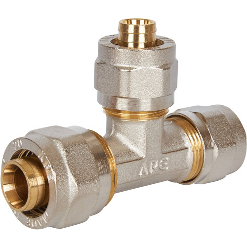 Тройник переходной STOUT 20х16х16 для металлопластиковых труб винтовой, SFS-0010-201616