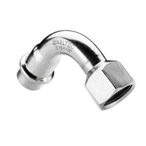 Пресс-отвод из нержавеющей стали с внутренней резьбой обеспечивает соединение тонкостенной стальной трубы с резьбовым элементом монтируемой системы под углом 90°. Область применения – трубопроводы водоснабжения, отопления, иные инженерные и технологические установки с рабочей температурой до 120 °С и давлением до 16 бар Отвод VTi.956.I изготовлен из стали AISI 304. Материал уплотнения – эластомер EPDM. Отдельно можно приобрести уплотнительные кольца из FPM ; в этом случае максимальная рабочая температура увеличивается до 140 °С. Обжатие пресс-соединения производится с помощью пресс-инструмента V-профиля.