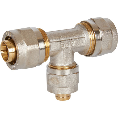 Тройник переходной STOUT 20х16х20 для металлопластиковых труб винтовой, SFS-0010-201620