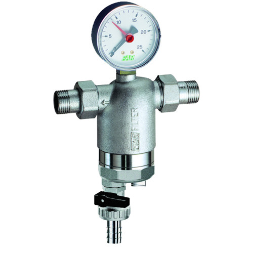 • Фильтр 3/4", НР-НР, 300 мкм, с магнитной вставкой, с манометром, Tmax: 95 °С, 25 бар FAR