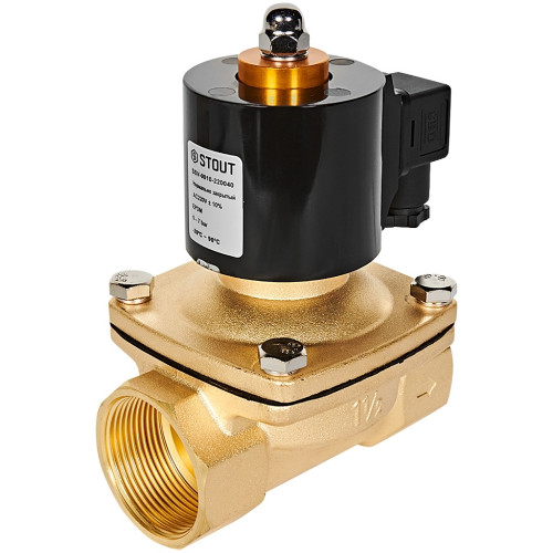 • Клапан соленоидный (электромагнитный) STOUT прямого действия НЗ 220В G1 1/2, SSV-0010-220040