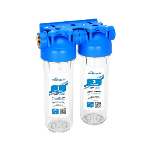 фильтр двухступенчатый АКВАБРАЙТ SLIM LINE (лат.резьба 1/2",кронштейн и ключ в комплекте) АБФ-2 1/2