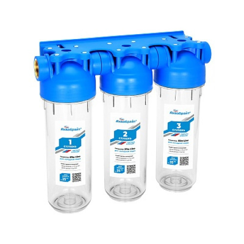 • фильтр трёхступенчатый АКВАБРАЙТ SLIM LINE (лат.резьба 1/2",кронштейн и ключ в комплекте) АБФ-3 1/2