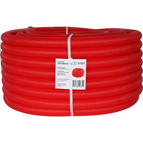 Труба гофрированная STOUT ПНД, цвет красный, наружным диаметром 35 мм для труб диаметром 25 мм, SPG-0002-503525
