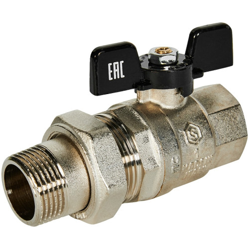 Кран шаровой полнопроходной с американкой STOUT ВР/НР ручка бабочка 1, SVB-0007-200025