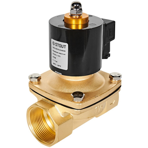 Клапан соленоидный STOUT (электромагнитный) прямого действия НЗ 24В G1 1/2, SSV-0010-024040
