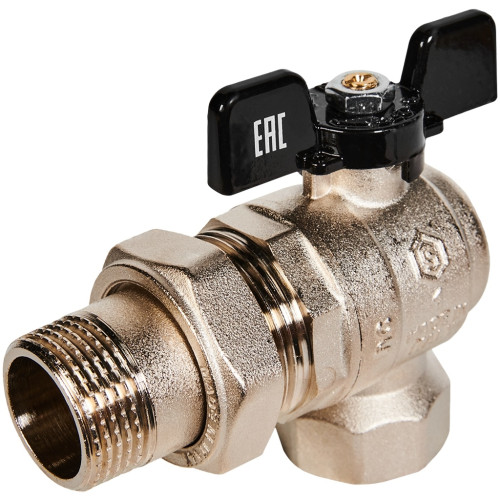 Кран шаровой полнопроходной угловой с американкой STOUT ВР/НР ручка бабочка 1, SVB-0008-200025