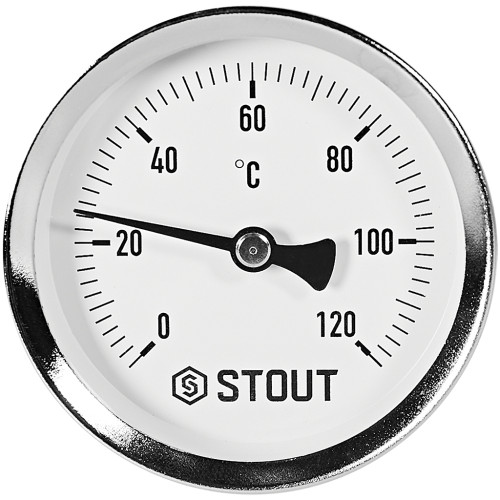 Термометр биметаллический осевой с погружной гильзой STOUT корпус Dn 63 мм, гильза 50 мм 1/2 , 0...120°С