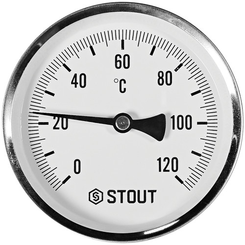 Термометр биметаллический осевой с погружной гильзой STOUT корпус Dn 100 мм, гильза 75 мм 1/2 , 0...120°С