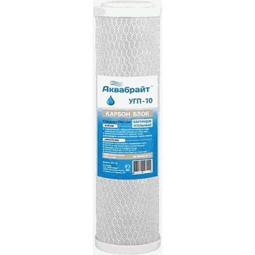 Картридж АКВАБРАЙТ УГП-10 изготовлен из спеченного прессованного активированного угля с пищевым допуском.