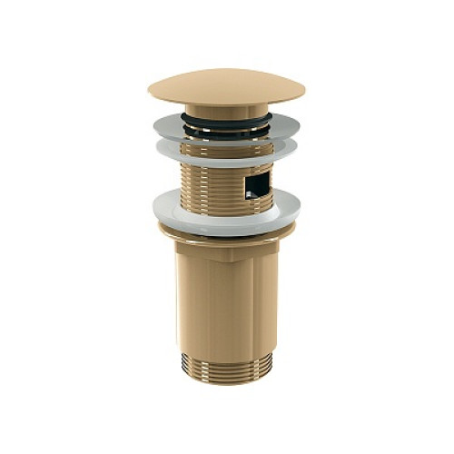 Донный клапан Alcadrain A392-G-P с функцией click/clack применяется для организации слива воды в умывальнике или препятствию ее стока по желанию потребителя: первым нажатием на заглушку клапан закрывается, следующим - открывается. Клапан изготовлен из латуни, заглушка диаметром 66 мм выполнена в цвете золото. Резьба для присоединения сифона 1.1/4" (32 мм), донный клапан A392-G-P используют в умывальниках с функцией перелива.