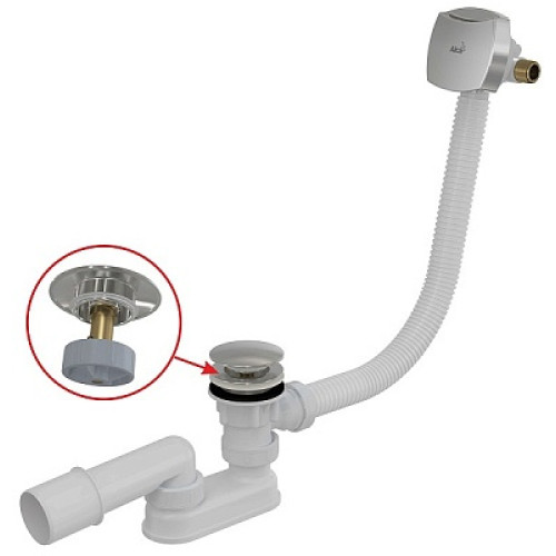 Сифон для ванны (обвязка) Alcadrain A509CKM предназначен для организации слива или заполнения ванны водой, набор воды в ванну присходит через отверстие перелива. Применяется в ваннах с толстыми стенками от 10 до 18 мм.