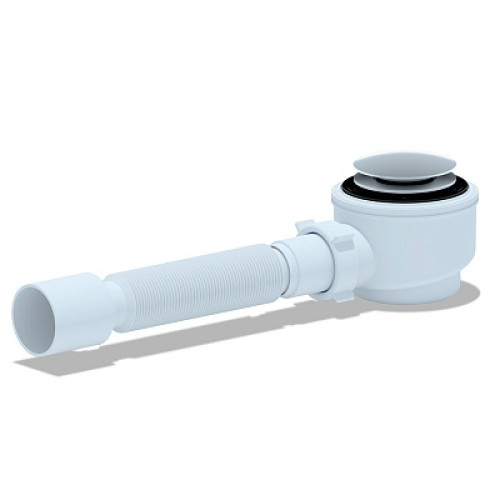 Сифон для душевого поддона АНИ Пласт E415CLG — это современное и стильное решение для организации слива воды в душевой кабине. Диаметр подключения составляет 1 1/2 дюйма, а диаметр выпуска — 50 мм. Сифон оснащён выпуском с механизмом «клик-клак» и декоративной решёткой в форме «гриба», а также гибкой трубой 40×50 мм, что обеспечивает удобство подключения к канализационной системе даже в труднодоступных местах. Изделие выполнено из прочных и долговечных материалов, устойчивых к воздействию влаги и бытовой химии, что гарантирует долгий срок службы и надёжную работу.
