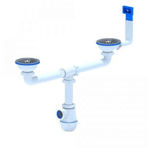 сифон д/мойки АНИ Грот 3.1/2"х40 двойной с жестким перелив.,с отводом д/стир.машины A3545