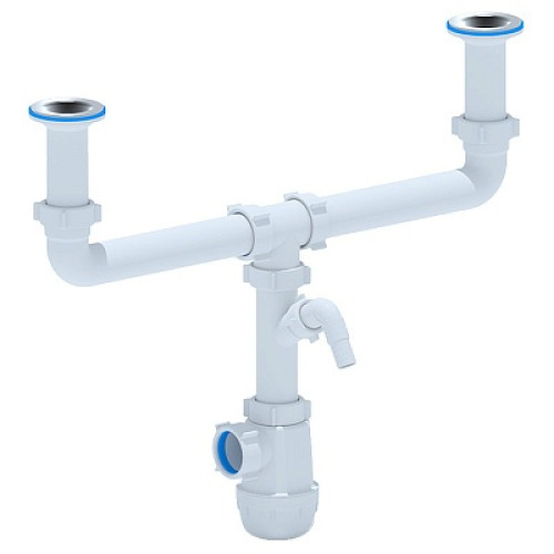 Сифон АНИ пласт "Грот" А4000 для кухонной мойки с двумя чашами разного уровня и сливными отверстиями 50мм. Выход для подключения к канализации 40мм.