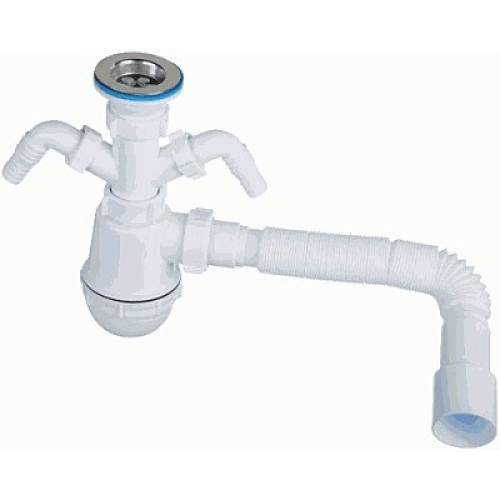 сифон д/мойки АНИ Грот 1.1/2х40 c 2-мя отводами д/стир.машины, с гибкой трубой 40х40/50 А1115