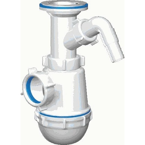 сифон д/мойки АНИ Грот 1.1/2"х40 с литым выпуском, c отводом д/стир.машины A2000