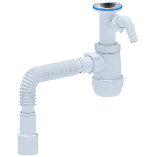 сифон д/мойки АНИ Грот 1.1/2"х40 с литым вып.,c отводом д/стир.машины,с гибк.труб. 40х40/50 А2015