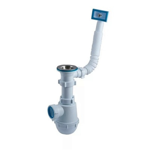 Сифон АНИ пласт Грот A0140S бутылочной формы применяется для моек. Общая высота сифона варьируется от 109 до 186 мм, выпуск из нержавеющей стали, присоединительный размер 1.1/2 (40 мм). Перелив с гофрированной трубой, горизонтальный, прямоугольной формы. Выход для подключения к канализации 40 мм.