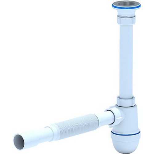 Сифон АНИ пласт Юнг BM1005 бутылочного типа применяется для умывальников. Общая высота сифона варьируется от 160 до 235 мм, горловина выпуска из нержавеющей стали, присоединительный размер 1.1/4" (32 мм). Выход на 32 мм для подключения к канализации с помощью гофрированной трубы длиной от 320 до 710 мм с выходом на 32 мм.