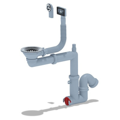 Сифон АНИ пласт F5345S для мойки смещенный, с отводом для стиральной машины, гибким круглым и прямоугольным переливом.
