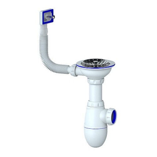 • сифон д/мойки 3.1/2"х40 с выпуском и прямоугольным переливом без отвода Unicorn В410P