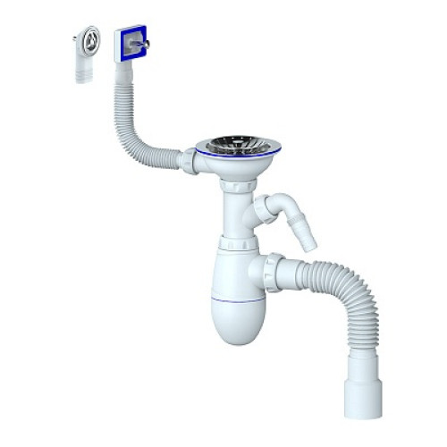 сифон д/мойки 3.1/2"х40 с выпуском, прямоуг.и кругл.переливом, гибк. отводом 40х40/50 Unicorn В427