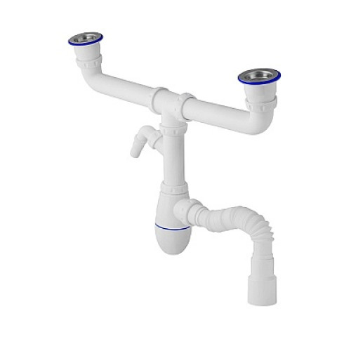 сифон д/мойки 1.1/2"х40 двойной,с нерж.чаш. д.115,отв.д/быт.тех,гибк.отв. 40х40/50 Unicorn B745V