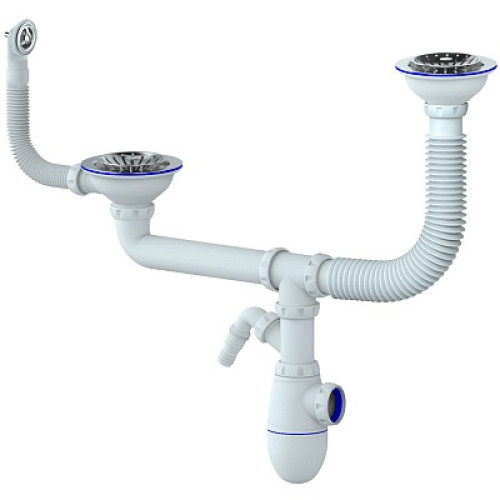 сифон д/мойки 3.1/2"х40 двойной разноуровневый,с нерж.чаш. д.115,отв.д/быт.тех,б/отв. Unicorn B710V