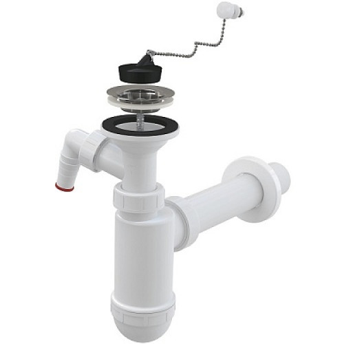 сифон д/умывальника 1 1/4"х40 с отводом д/быт.техники и цепочкой A41PR Alcadrain