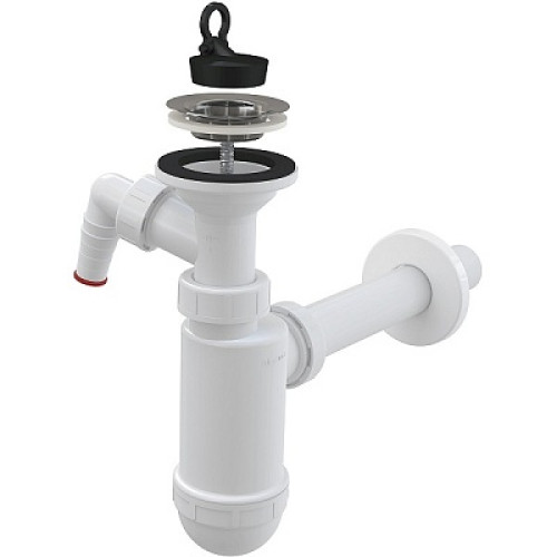 Сифон для умывальника Alcadrain A410P изготовлен из полипропилена, предназначен для организации слива воды и предотвращения поступления неприятных запахов в обратном направлении. Сифон A410P оснащен выпуском с нержавеющей решеткой диаметром 63 мм для стандартного отверстия слива умывальника, пробкой из ПВХ и одним отводом для подключения стиральной или посудомоечной машины, присоединение к канализации 32 мм.