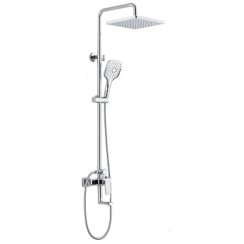Выдвижная телескопическая стойка (нерж. сталь, хром): высота функциональная 900 -1450мм, диаметр 25мм, вылет верхнего душа 340мм, держатель ручной лейки плавающий FightFix Лейка верхнего душа (ABS-пластик, хром): на подвижном шарнире, диаметр 235мм, Форсунки Self-Clean Device, Eco system Ручная лейка: диаметр 125мм, 3 режима, переключатель - кнопка, Форсунки Self-Clean Device, Eco system Cмеситель латунный с поворотным изливом: картридж универсальный 35мм, переключатель отдельный трехконтурный (ручной душ - верхний душ - излив) Комплектация: душевой шланг 150см (в металл. оплетке), монтажный комплект