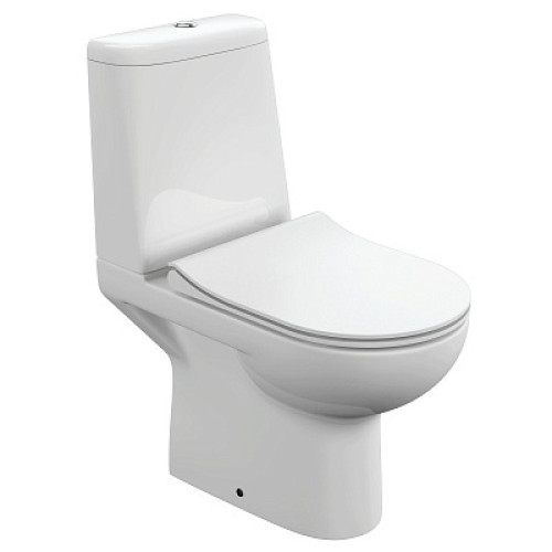 Безободковый напольный унитаз-компакт с ультратонким, антибактериальным сиденьем с плавным закрыванием и легкосъемным механизмом. Двухуровневая арматура с механизмом смыва OLI 3/5л.