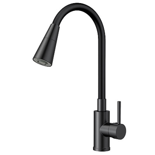 Смеситель для кухни с гибким черным изливом прекрасно впишется в интерьер Вашей кухни. Лейка ис двумя режимами..