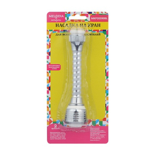 Аэратор пластиковый М22хМ24 с гибким удлинителем 14см, 2 функции, с сеткой из нержавеющей стали , цвет белый MELODIA MKP20390BL предназначен для насыщения воздухом водной струи, выходящей из смесителя. Аэратор рассеивает воду, смешивает ее с воздухом и тем самым уменьшает расход воды без заметного снижения интенсивности потока. Внутренняя резьба - М22; наружная резьба - М22, М24. Материал корпуса аэратора - ABS пластик, материал сетки - нержавеющая сталь.