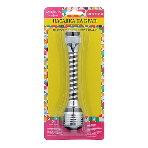 Аэратор пластиковый М22хМ24 с гибким удлинителем 14см, 2 функции, с сеткой из нержавеющей стали, черный MELODIA MKP20395BL предназначен для насыщения воздухом водной струи, выходящей из смесителя. Аэратор рассеивает воду, смешивает ее с воздухом и тем самым уменьшает расход воды без заметного снижения интенсивности потока. Внутренняя резьба - М22; наружная резьба - М22, М24. Материал корпуса аэратора - ABS пластик, материал сетки - нержавеющая сталь.