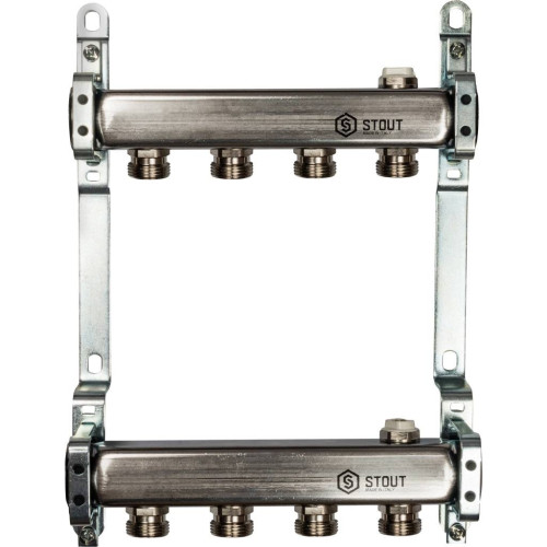 Коллектор из нержавеющей стали для радиаторной разводки STOUT 4 выхода, SMS 0923 000004