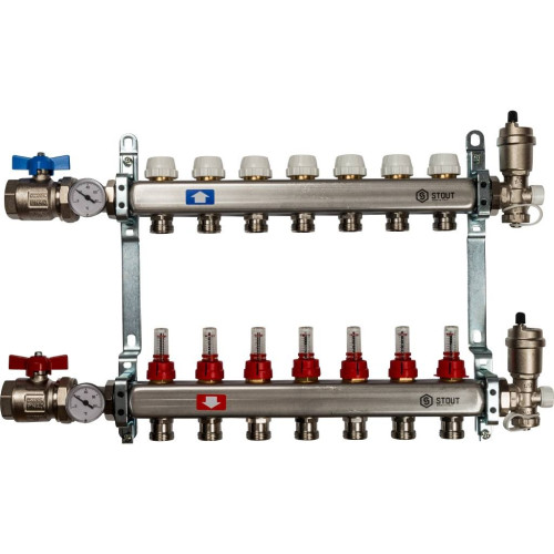 Коллекторные блоки STOUT производятся в Италии под тщательным контролем, проходя многочисленные тесты и сертификацию оборудования. Благодаря этому распределительные коллекторы STOUT обладают рядом преимуществ, среди которых надежность конструкции, качественные материалы, оптимальная комплектация блока, варианты исполнения для теплого пола и для радиаторной разводки.