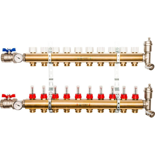 Распределительный коллектор из латуни с расходомерами STOUT 10 выходов, SMB 0473 000010