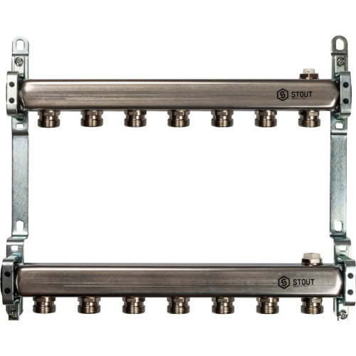 Коллектор из нержавеющей стали для радиаторной разводки STOUT 7 выходов, SMS 0923 000007