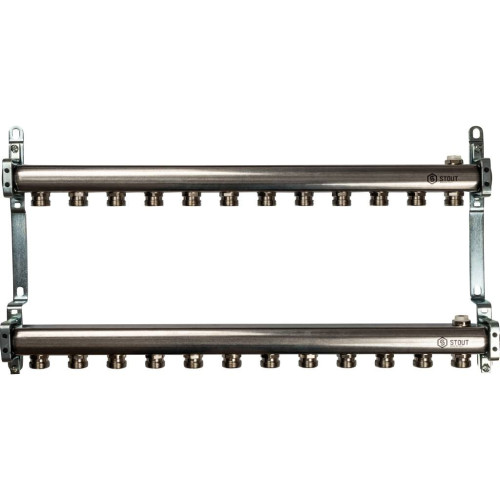 Коллектор из нержавеющей стали для радиаторной разводки STOUT 12 выходов, SMS 0923 000012