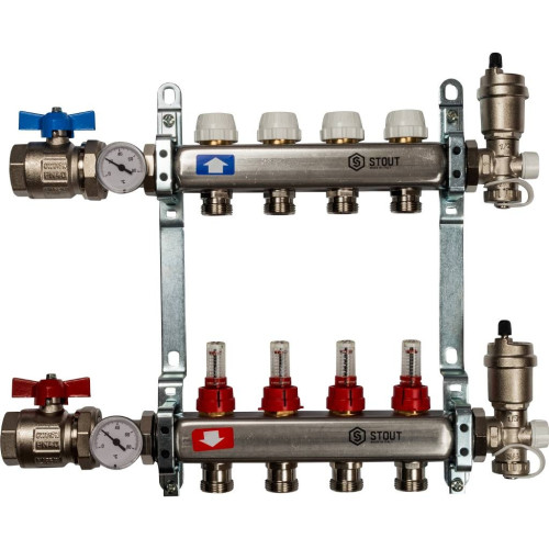 Коллектор из нержавеющей стали в сборе с расходомерами STOUT 4 выхода, SMS 0907 000004