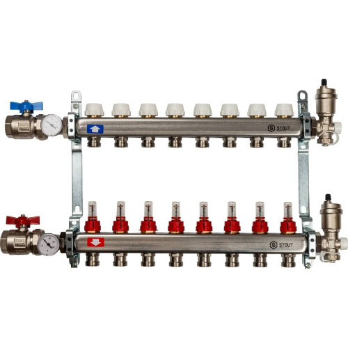 Коллекторные блоки STOUT производятся в Италии под тщательным контролем, проходя многочисленные тесты и сертификацию оборудования. Благодаря этому распределительные коллекторы STOUT обладают рядом преимуществ, среди которых надежность конструкции, качественные материалы, оптимальная комплектация блока, варианты исполнения для теплого пола и для радиаторной разводки.