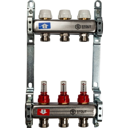 Коллектор из нержавеющей стали с расходомерами STOUT 3 вых., SMS 0917 000003