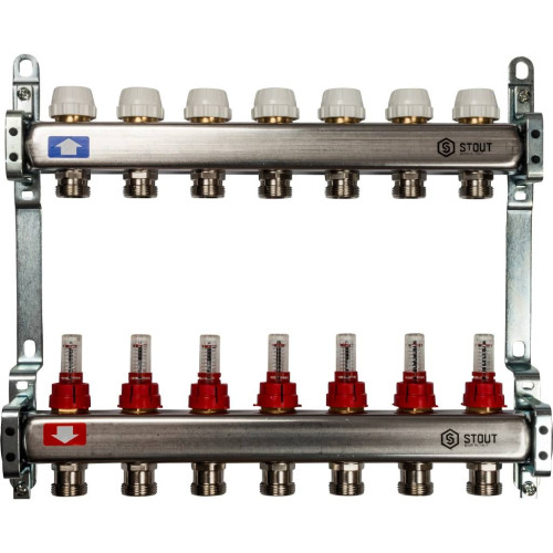 Коллектор из нержавеющей стали с расходомерами STOUT 7 выходов, SMS 0917 000007