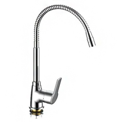Смеситель "Wave" для кухни, гибкий излив, арт. WA519S: Универсальность и стиль на вашей кухне. Ищете смеситель, который идеально впишется в любой интерьер и обеспечит максимальное удобство? Смеситель "Wave" с гибким изливом - это то, что вам нужно! Его элегантный дизайн и функциональность сделают вашу кухню еще более современной. Гибкий излив позволяет легко направлять струю воды под любым углом, а прочный хромированный корпус гарантирует долговечность.