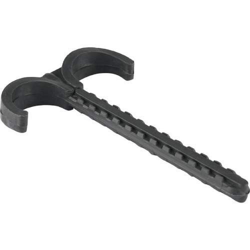 Предназначен для крепления полимерных и металлополимерных труб к бетонным полам и другим строительным конструкциям зданий.Крюки изготовлены из ударопрочного полимера и выпускаются двух типов: одинарный - для крепления одиночной трубы, двойной - для крепления пары параллельно прокладываемых труб.Дюбель-крюки забиваются молотком в предварительно просверленные в строительной конструкции отверстия.Крюк надежно фиксирует трубу, не передает вибрацию и не подвержен коррозии.